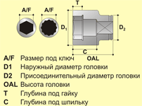 > Головки ударные 6-гранные 1/2"